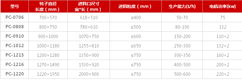 除了錘式破碎機(jī)轉(zhuǎn)子這個(gè)技術(shù)參數(shù)之外,錘式破碎機(jī)電機(jī)功率也是錘式破碎機(jī)重要的一個(gè)區(qū)分,作為大產(chǎn)量的破碎機(jī)設(shè)備,配備的電機(jī)功率然也是比較大的,但是以我們公司同等時(shí)處理量的破碎機(jī)設(shè)備為例,以時(shí)產(chǎn)50噸的錘式破碎機(jī)為例,需要配備的電機(jī)功率是75KW,其他廠家需要配備的電機(jī)功率是比較大的,那么整體的電能消耗是比較大的,在電能消耗上的技術(shù)優(yōu)勢是顯而易見的,下面以別的廠家設(shè)備電機(jī)功率和我們公司的設(shè)備電機(jī)功率進(jìn)行一下對比。