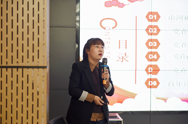 王霞副校長結(jié)合當下時政要點和我近現(xiàn)代史實,圍繞“中共百年歷程與經(jīng)驗啟示”的主題,通過課件、視頻展示,帶大家回顧了中共產(chǎn)黨的成立背景、發(fā)展歷程,并講解共產(chǎn)黨百年歷史取得的經(jīng)驗和啟示。