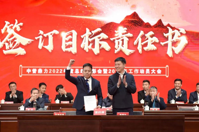 新的任命書(shū)下發(fā)以后,中譽(yù)鼎力各區(qū)域銷(xiāo)售負(fù)責(zé)人與張治民董事長(zhǎng)一起簽訂銷(xiāo)售目標(biāo)責(zé)任書(shū),為2023年銷(xiāo)售服務(wù)工作的開(kāi)展表決心、振士氣、強(qiáng)信心。