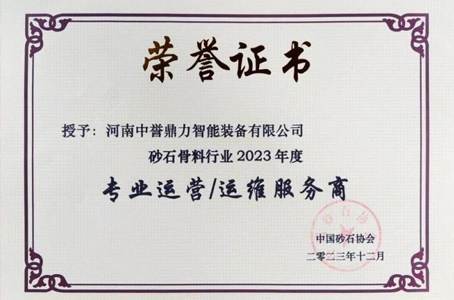 表彰先進(jìn),樹(shù)立典范,推動(dòng)砂石行業(yè)向更高層次發(fā)展,在2023年度砂石及裝備行業(yè)表彰會(huì)上——河南中譽(yù)鼎力智能裝備有限公司喜獲全國(guó)砂石骨料行業(yè)“專(zhuān)業(yè)運(yùn)營(yíng)/運(yùn)維服務(wù)商”和“優(yōu)秀裝備供應(yīng)商”兩項(xiàng)榮譽(yù)表彰;中譽(yù)鼎力合作企業(yè)甘肅平?jīng)鲂率兰o(jì)建材、河南鶴壁淇縣恒源礦業(yè)、重慶中材參天建材等相關(guān)項(xiàng)目獲評(píng)“2020年度綠色砂石基地”!
