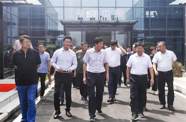 衛(wèi)輝市導考察藍天環(huán)保材料公司干混砂漿、機制砂等一體化建材項目