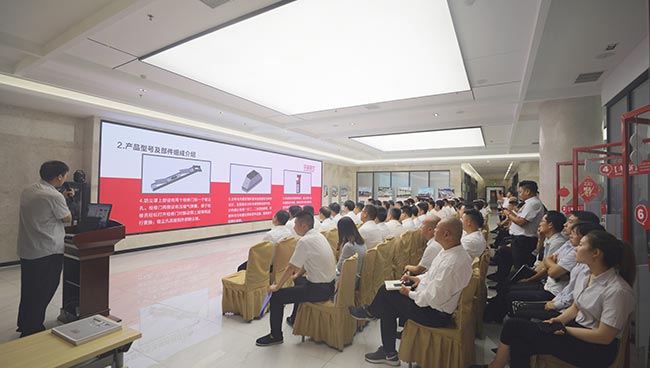 發(fā)布會上,河南中譽鼎力智能裝備有限公司技術部長劉海淘先后為大家介紹了DLPCZ、DLPC系列錘式破碎機、DL2YKZ3070振動篩密封鋼構、給料+破碎整體鋼構、移動式破碎站、干法制砂樓、選粉機等公司新上市設備,對設備的特點、分類、組成及安裝維護等內容進行了詳細的講解與說明,讓各地服務銷售代表對公司新上市設備及其優(yōu)勢有了更深層次的了解和認識,便于今后營銷服務工作的開展。