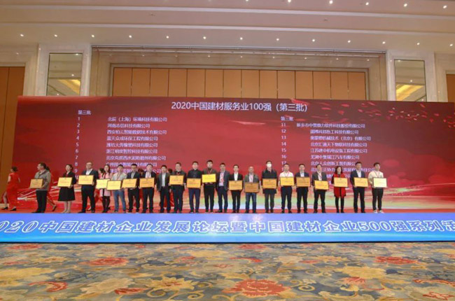 11月5日-6日,由中建筑材料企業(yè)管理協(xié)會(huì)舉辦的“2020年中建材企業(yè)發(fā)展論壇暨2020中建材企業(yè)500強(qiáng)系列活動(dòng)發(fā)布會(huì)”在安徽合肥隆重舉行。會(huì)上,中譽(yù)鼎力軟件科技股份有限公司榮獲“2020中建材服務(wù)業(yè)100強(qiáng)”稱號(hào)。
