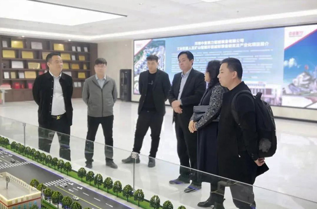 在中譽(yù)鼎力智能裝備有限公司綜合辦公樓,考察團(tuán)先后參觀了中譽(yù)鼎力發(fā)展歷程文化墻、多位一體循環(huán)建材產(chǎn)業(yè)園項(xiàng)目沙盤,并觀看了公司相關(guān)宣傳片,對(duì)中譽(yù)鼎力主營業(yè)務(wù)及近年來發(fā)展情況有了進(jìn)一步了解。