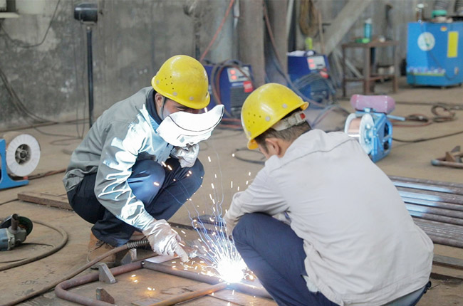 組對(duì)工人不僅要有識(shí)圖知識(shí)、常用金屬材料及熱處理知識(shí)、矯正(復(fù)合)變形原材料及一般結(jié)構(gòu)件的能力,會(huì)計(jì)算展開(kāi)料長(zhǎng),還得會(huì)使用維護(hù)剪床、氣割、電焊機(jī)等設(shè)備,并進(jìn)行位置定位焊、鉚接、螺紋連接,具備檢驗(yàn)尺寸、形狀位置等能力。