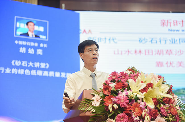 隨后,中砂石協(xié)會(huì)會(huì)長(zhǎng)胡幼奕從當(dāng)前家環(huán)保形勢(shì)、各級(jí)發(fā)布砂石文件、砂石骨料市場(chǎng)需求及砂石產(chǎn)業(yè)發(fā)展模式等角度出發(fā),作“砂石行業(yè)的綠色低碳高質(zhì)量發(fā)展”的課程講解。