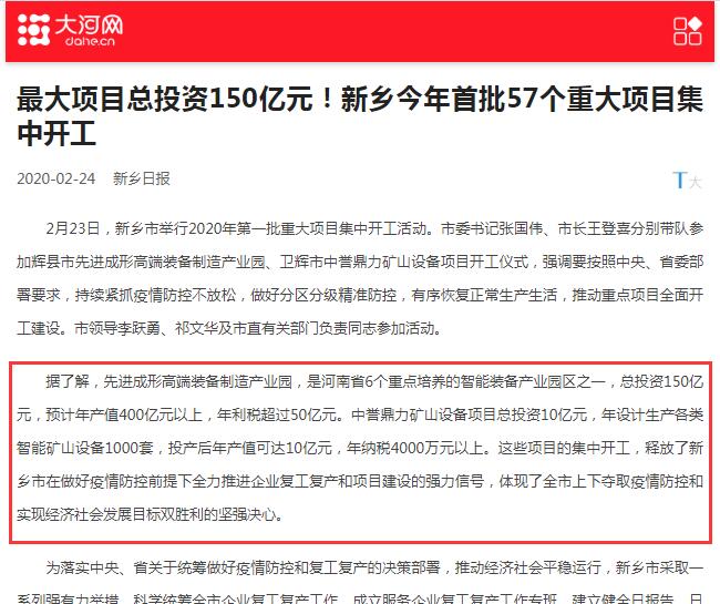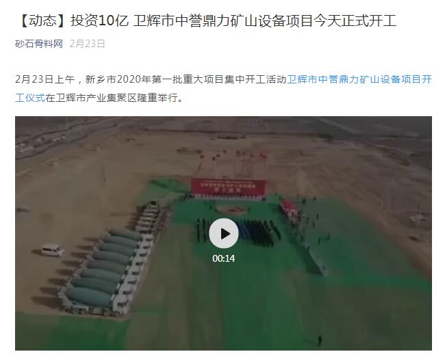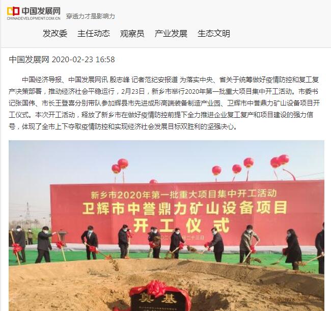 報道鏈接:【資訊】投資10億,衛(wèi)輝市中譽(yù)鼎力礦山設(shè)備項目正式開工!