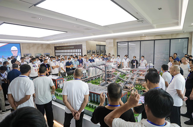 在智能裝備公司綜合辦公樓,考察團(tuán)先后參觀了中譽(yù)鼎力企業(yè)文化墻和多位一體循環(huán)建材產(chǎn)業(yè)園項(xiàng)目沙盤(pán),并觀看了公司相關(guān)宣傳片,對(duì)中譽(yù)鼎力主營(yíng)業(yè)務(wù)及近年來(lái)發(fā)展情況有了進(jìn)一步了解。