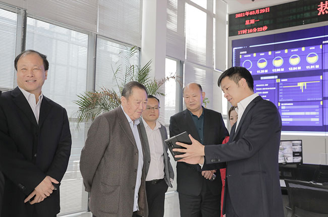 張鐵崗院士一行先來到由中譽鼎力投資建設(shè)的多位一體循環(huán)建材產(chǎn)業(yè)園項目實踐基地——衛(wèi)輝市藍天環(huán)保材料有限公司“四位一體”大型建材項目調(diào)研,深入了解建材生產(chǎn)智能管理模式。