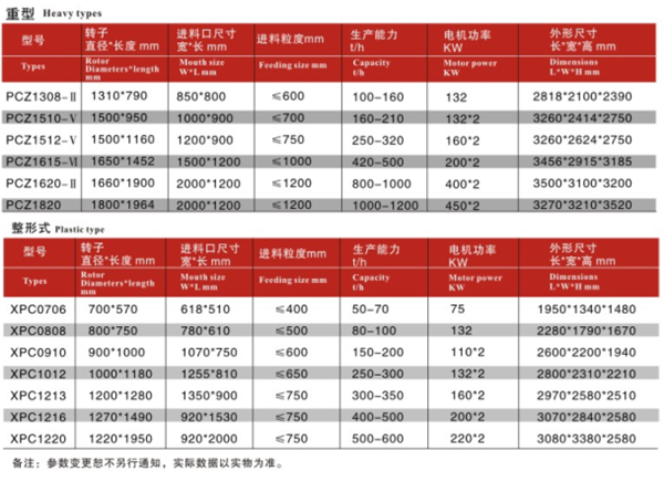 Pc破碎機(jī)類型介紹、錘式破碎機(jī)參數(shù)