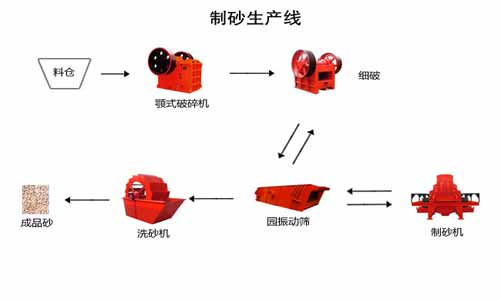 一般制砂生產(chǎn)線由破碎制砂設(shè)備和輔助設(shè)備共同構(gòu)成,其中破碎制砂設(shè)備根據(jù)流程依次為:顎式破碎機(粗破)、圓錐式破碎機/反擊式破碎機(細(xì)破)、制砂機 ,分三個破碎等級對物料進(jìn)行加工處理。輔助設(shè)備一般有:給料倉、振動給料機、傳輸皮帶機、振動篩、洗砂機。