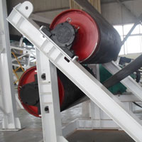 皮帶輸送機(jī)是一種摩擦驅(qū)動以連續(xù)方式運輸物料的機(jī)械,主要由機(jī)架、輸送皮帶、托輥、滾筒、張緊裝置、傳動裝置等組成。工作時驅(qū)動滾筒由電動機(jī)通過減速器驅(qū)動,輸送帶依靠驅(qū)動滾筒與輸送帶之間的摩擦力拖動。驅(qū)動滾筒一般都裝在卸料端,以增大牽引力,有利于拖動。物料由喂料端喂入,落在轉(zhuǎn)動的輸送帶上,依靠輸送帶摩擦帶動運送到卸料端卸出。
