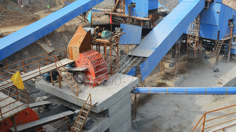 此條生產(chǎn)線時產(chǎn)700噸;基本配置:PCZ1615重型錘式破碎機、PC1512錘式破碎機、ZG2038給料機、3YKZ3070×2振動篩、2YKZ3070×2振動篩。