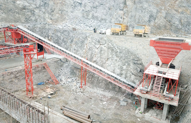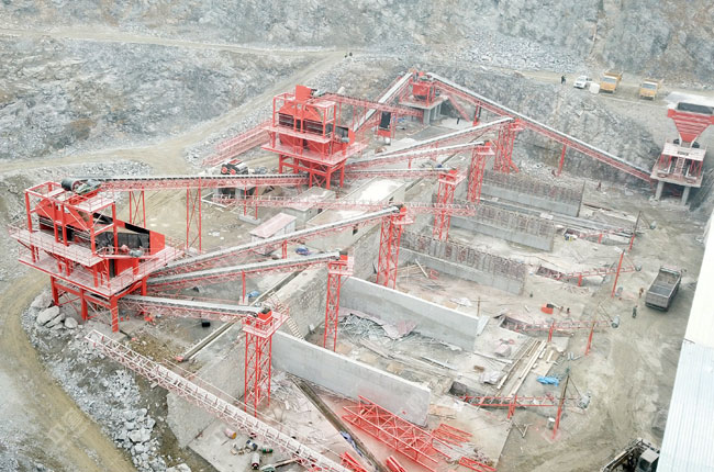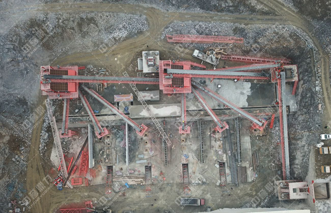 工藝流程:原料經(jīng)料倉由ZG1550振動給料機送到重型錘式破碎機PCZ1615進行初步破碎,破碎后的物料被輸送到整形破XPC1622進行加工,加工后的物料輸送到一組3YKZ3070并篩進行篩分,篩分三種成品料,其中一部分被送到雙轉(zhuǎn)子制砂機ZSJ1218進行細碎,不滿足成品料粒度要求的被返回整形破進行再次加工,其余物料被送到下一組3YKZ3070并篩進行篩分,篩分出三種成品料,分別送到成品料倉中。