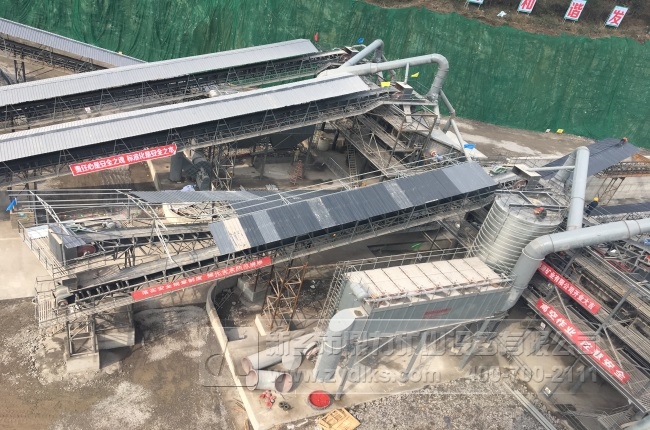 上圖為貴州遵義同興源建材時(shí)產(chǎn)1000噸骨料生產(chǎn)線(xiàn)生產(chǎn)現(xiàn)場(chǎng),排列整齊的皮帶輸送帶有序的運(yùn)送骨料,在一些皮帶輸送機(jī)密集的區(qū)域,設(shè)置了脈沖袋式除塵器,也是由中譽(yù)鼎力研發(fā)的,將設(shè)備安裝在基臺(tái)上方,占地面積小,節(jié)省基建投資。