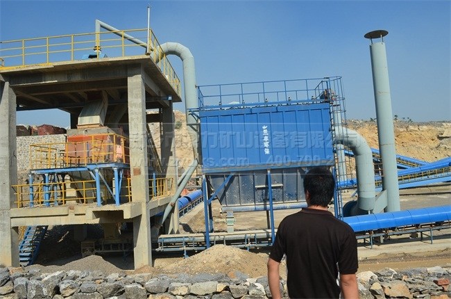 時產(chǎn)300噸環(huán)保石料生產(chǎn)線基本配置:ZG1238振動給料機(jī)、PCZ1512重型錘式破碎機(jī)、2YK2060振動篩*2、DMCA脈沖除塵器*5臺等。在這條石料生產(chǎn)線中,物料先經(jīng)由重型錘式破碎機(jī)進(jìn)行破碎,被破碎后的物料經(jīng)振動篩篩分分級,符合客戶粒度需求的成品物料被傳送至成品料堆,不符合的物料被重新送至破碎機(jī)機(jī)腔內(nèi)進(jìn)行再次破碎。在每一個環(huán)節(jié)都配置有相應(yīng)的除塵設(shè)備。這是一條封閉型的環(huán)保石料生產(chǎn)線。也是我們家砂石生產(chǎn)行業(yè)要發(fā)展的方向。