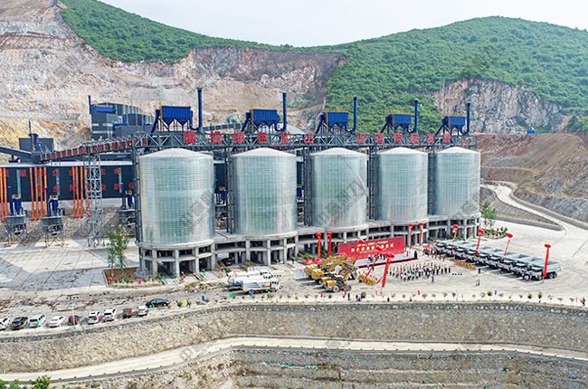 b.不同規(guī)格成品料通過(guò)密閉輸送帶進(jìn)入相應(yīng)規(guī)格的封閉成品料鋼板儲(chǔ)料倉(cāng),避免石料露天堆放造成粉塵污染。