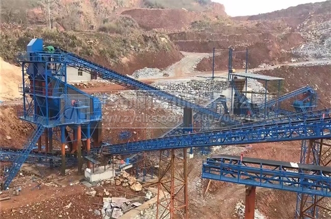 從生產(chǎn)現(xiàn)場(chǎng)我們看到,此條時(shí)產(chǎn)600噸錘式破碎機(jī)石料生產(chǎn)線是依托螢石礦建成的,螢石是工業(yè)上氟元素的主要來(lái)源,它廣泛用于醫(yī)藥、防腐、機(jī)械等域,是一種硬度較脆的物料,為了減少生產(chǎn)中產(chǎn)生的石粉,我們?cè)O(shè)置了多臺(tái)破碎機(jī)進(jìn)行再次破碎的環(huán)節(jié),然后將回料輸送到破碎機(jī)內(nèi)進(jìn)行再次破碎,終可以達(dá)到客戶出料粒度的要求。