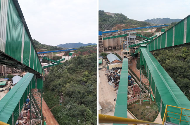 封閉的輸送長(zhǎng)廊及成品料倉(cāng)