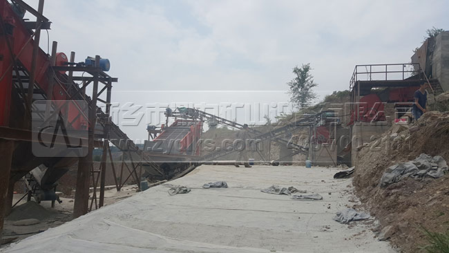 從生產(chǎn)現(xiàn)場我們可以看到,此條日產(chǎn)1500噸砂石料生產(chǎn)線部都是選用我們公司的設(shè)備,原料和成品料之間部都是用皮帶輸送機傳輸?shù)�,生產(chǎn)流程是流暢,可以自動化的將成品料生產(chǎn)出來,減少了使用額外附加設(shè)備的幾率。