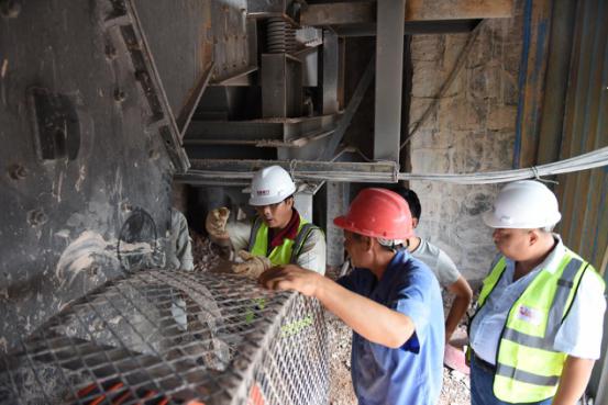 現(xiàn)場(chǎng),鼎力安裝工程師、銷售經(jīng)理、售后服務(wù)經(jīng)理了解到該生產(chǎn)線的產(chǎn)量沒有達(dá)到設(shè)備時(shí)產(chǎn)量時(shí),立即開始檢測(cè)設(shè)備、查找原因。經(jīng)過查看用戶的破碎原材料,發(fā)現(xiàn)原材料里含有硅巖,加劇了破碎機(jī)錘頭磨損程度,進(jìn)而影響產(chǎn)量。建議在破碎前將硅巖層剝離掉,避免錘頭磨損嚴(yán)重的情況再次出現(xiàn)。