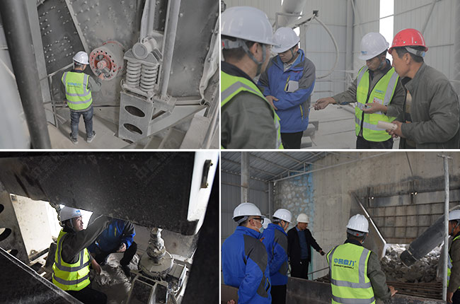 在現(xiàn)場,售后服務(wù)團(tuán)隊各司其責(zé),分別對這條時產(chǎn)1500噸砂石生產(chǎn)線的給料機、破碎機、制砂機、振動篩、減速機、輸送設(shè)備、散裝機、除塵設(shè)備、拉鏈機、電氣設(shè)備等進(jìn)行細(xì)致檢查,并做詳細(xì)記錄。同時也向項目相關(guān)負(fù)責(zé)人就設(shè)備的日常使用保養(yǎng)、注意事項提出了建議。