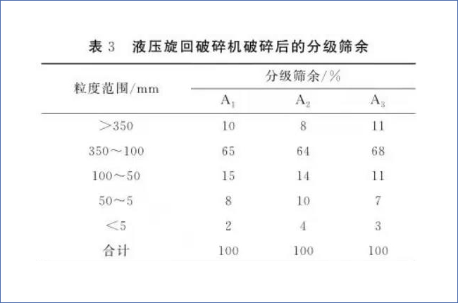 根據(jù)以上數(shù)據(jù),傳統(tǒng)旋回破碎機(jī)及顎式破碎機(jī)通常情況下的出料均為350mm左右。而中譽(yù)鼎力DLHGC臥式旋回破碎機(jī)成功實現(xiàn)了成品料小于200mm的粒度要求,擁有更大的破碎比,甚至可以將傳統(tǒng)的三級硬巖破碎工藝簡化為兩級工藝,設(shè)備優(yōu)勢顯著。