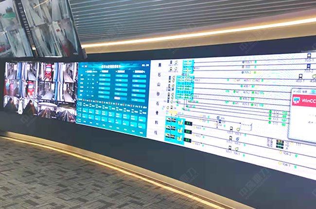 河南固始縣新旭礦業(yè)時產(chǎn)3000噸骨料生產(chǎn)線礦山生產(chǎn)管理系統(tǒng)顯示大屏